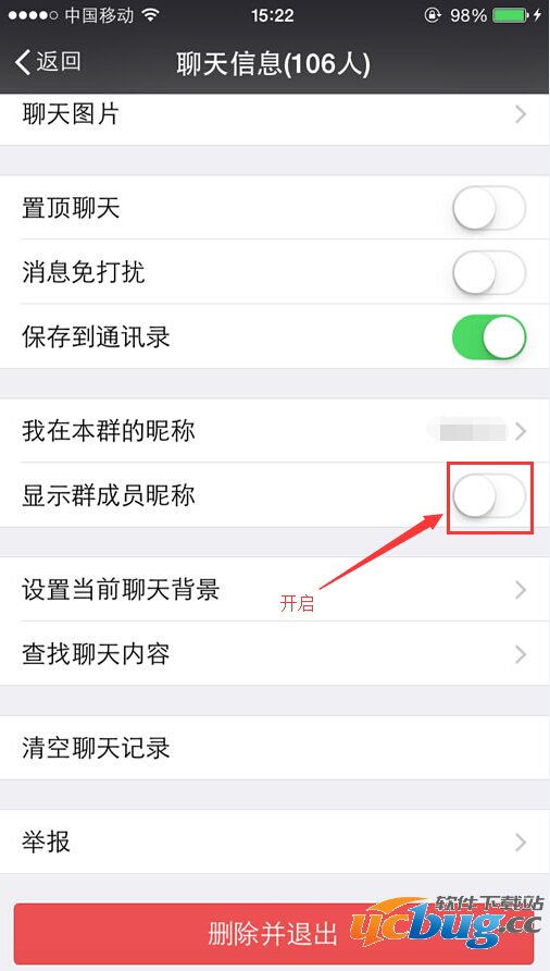 2、找到最下方的“显示群成员昵称”,开启;
