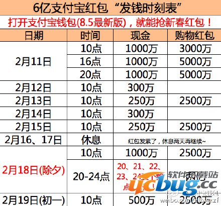 现附上支付宝钱包6亿红包时刻表,请叫我红领巾,用红包砸我,砸我,砸死我吧