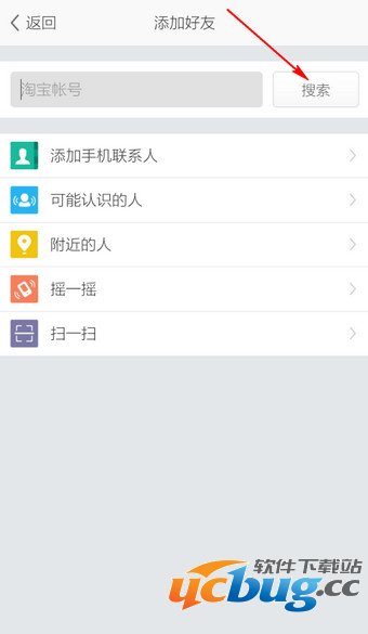 3.输入淘宝账号点击【搜索】,或添加手机联系人