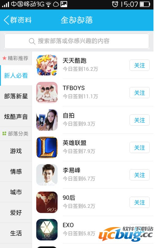 3、点击进入到兴趣部落的页面上,然后根据分类有很多的部落,你选择你喜欢的部落。