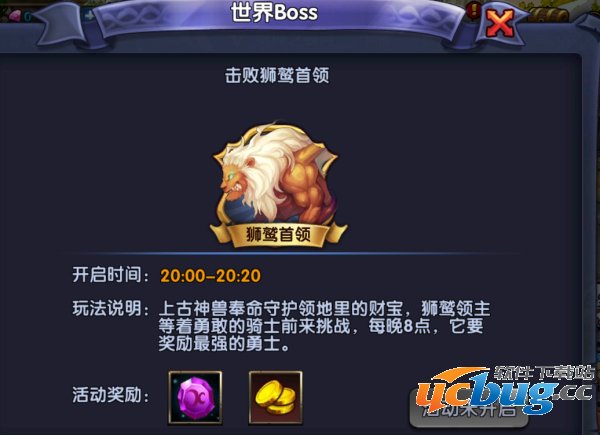1、活动时间内世界BOSS狮鹫首领将出现在BOSS地图里,点击【世界BOSS】活动界面右下方【参与活动】即可进入该地图;