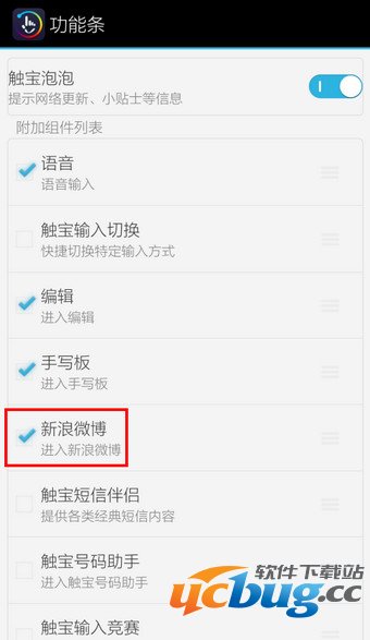 3.勾选【新浪微博】后即出现在功能条里