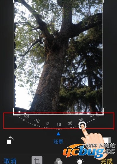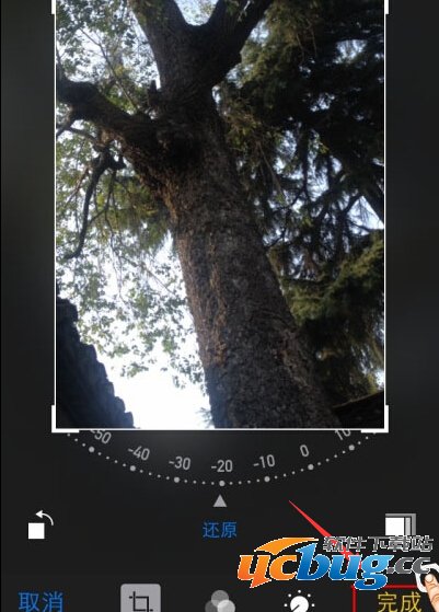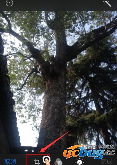 2.在照片“编辑”页面,点击“裁剪”按钮,即可进入裁剪编辑页面,照片下方可以显示弧度。