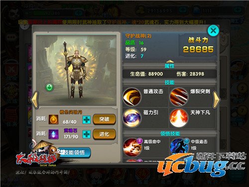 在之前的版本守护战神的的确确是一个鸡肋,但新版本稀有技能的调整以及副本小怪的新布局让守护战神脱离了冷板凳,成为当前版本最热门武神之一。众所周知在后期副本中,小怪往往分散且为远程怪,守护战神的3技能能让小怪很好的聚集从而进行击杀。而在PVP战役里守护战神作为控制与反控制的结合体,再加上较低的获取难度和本身超高的防御的属性又让守护战神在PVP中如鱼得水,成为巅峰热门武神之一。 但是不高的伤害是守护战神的致命伤,这并不影响其荣登最高性价比武神Top4。