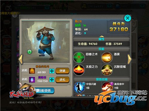 很多玩家并不愿意承认陈是最强武神,可是从性价比上来说,陈是第一武神无误。从平民玩家角度来说,陈是很容易进化到13的,而高等级的陈代表了生存,攻击以及控制的完整体。5.7秒的沉默技能在《太极熊猫》中找不出第二个时间更长的控制技能,而5.7米半径的施法范围几乎可以在较远处就将敌人沉默,不论在副本还是PVP中沉默都是最好的先手技能。再者,陈一系列进化所提供给主人的BUFF加之终极5000的免伤让陈不能再全面,配合陈的领悟专有技能“缠”又让陈的伤害再上一层楼。总而言之,其高等级的进化等级和各项全面的能力是陈登上性价比武神No.1宝座的胜利之剑。