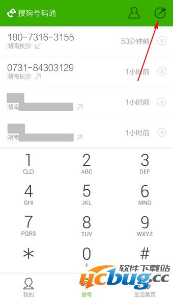 1.在搜狗号码通拨号界面点击右上角的【箭头】