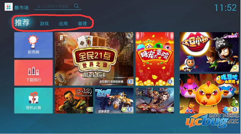 酷市场是优酷盒子自带的应用市场,里面有应用、游戏等,种类、数量都很多,我来详细介绍下。