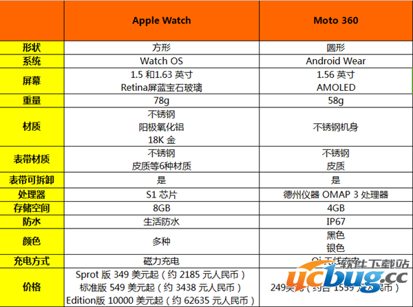 Moto 360 由于已经上市了一段时间了,所以目前价格处于一个比较稳定的趋势,约 1500 元上下。而 Apple Watch 将于 4 月 10 日在国内接受预定,Sprot 版 349 美元起(约 2185 元人民币),标准版 549 美元起(约 3438 元人民币),Edition版 10000 美元起(约 62635 元人民币)。 相比之下,Moto 360 在价格方面还是有不少优势的。