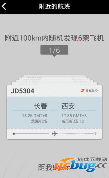 3、在该界面中,我们摇一摇手机,然后就可以查询到在自己周围上空有哪些飞机在飞。