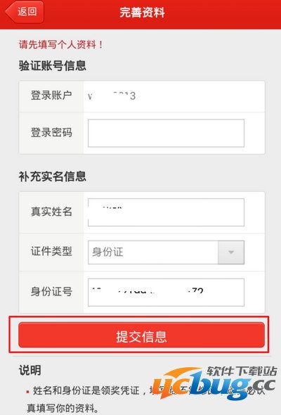 4、点击下一步之后,进入完善个人资料,进行实名认证,填写完成之后,点击提交信息,弹出确认框,点击确认完善资料。