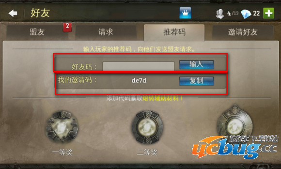 点击后面的复制,通过微信、QQ等方式将这一邀请码发给别的玩家或是自己的小伙伴。他们只要填写了这一推荐码,也就算是我们邀请成功了。邀请的好友越多,邀请者所获得的奖励也就越丰厚。根据累积的邀请数进行排名。三个档次的奖品,丰富的熔铸辅助材料等你来拿哦!