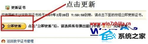 2)“请点此更新证书”进入后,点“立即更新”,并对弹出窗口中选择“是”完成更新;